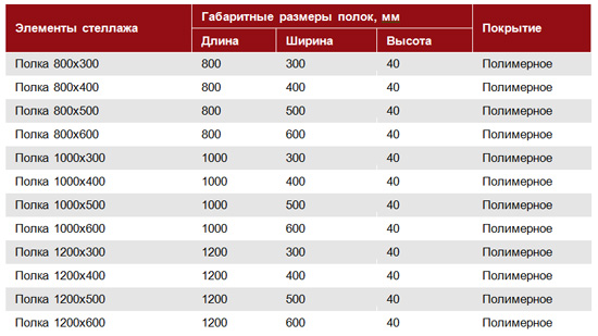 Полка – изготавливается из листового металла марки "Сталь 3ПС" толщиной 1 мм., имеет гнутые борты по периметру для обеспечения жесткости полке, что позволяет выдерживать без прогибов гарантированные нагрузки.