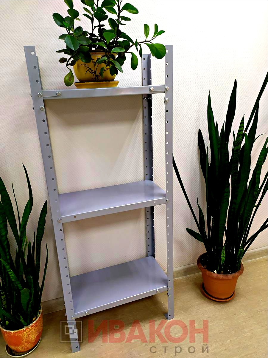 Стойка изготавливается из листового металла марки "Сталь 3ПС" и представляет собой металлический профиль, в форме равнополочного уголка 40*40мм с перфорацией через каждые 50 мм., с толщиной стенки 2 мм. Изготавливаемые стойки различаются по высоте: 2000, 2200, 2300, 2500, 2700 и 3000 мм. Имеет полимерное порошковое покрытие.